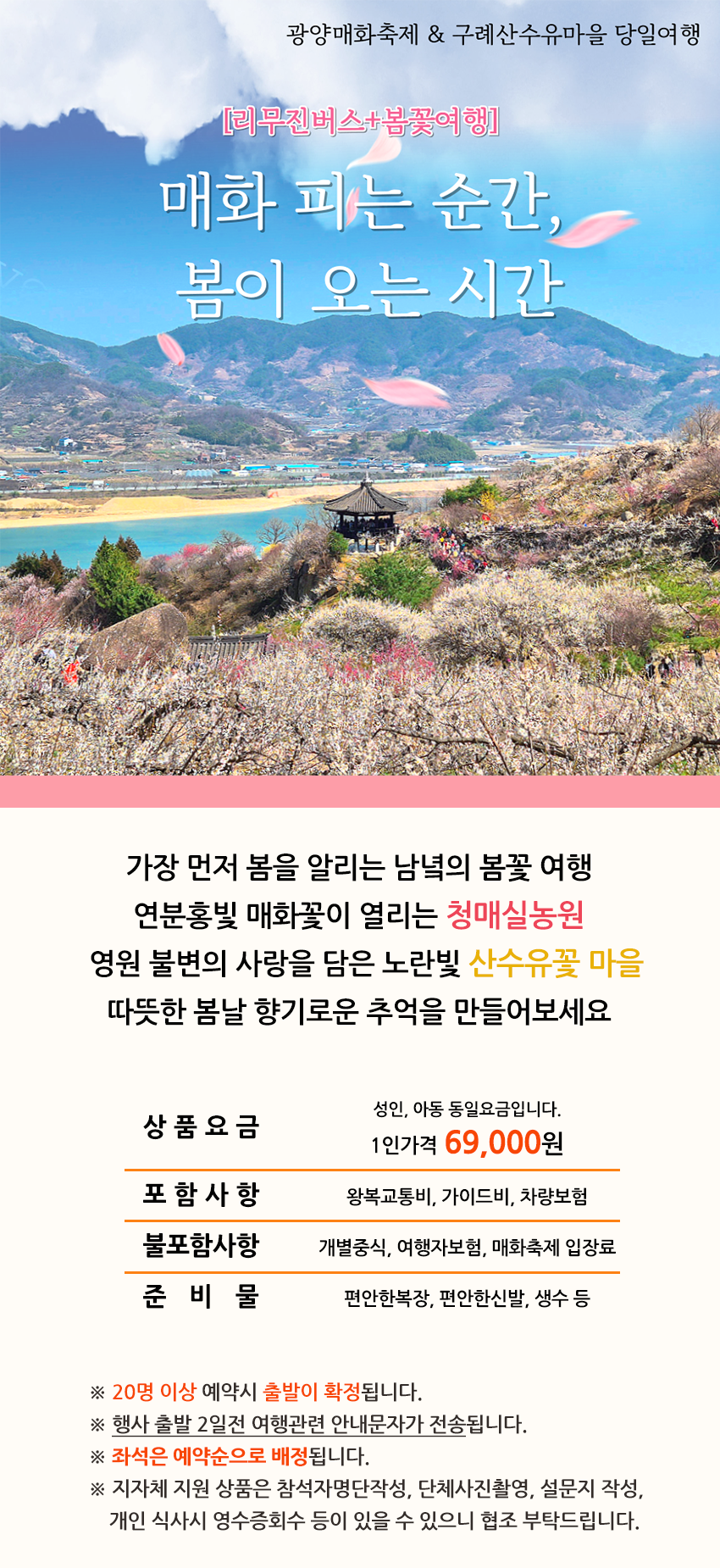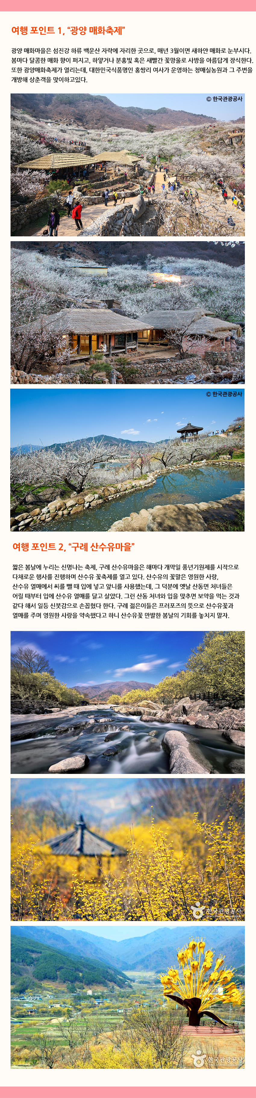 [리무진/한국관광공사추천] 봄꽃여행 베스트!! 광양 매화마을과 구례 산수유마을 당일