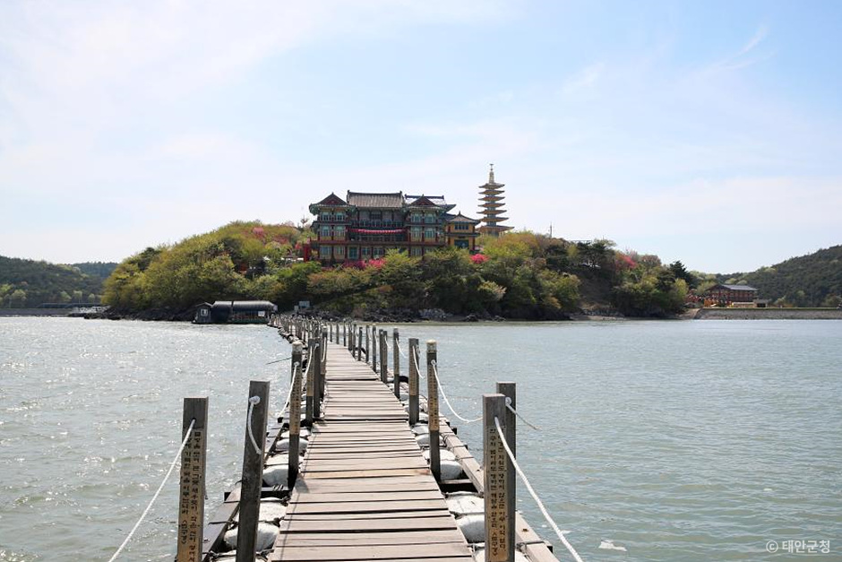 → 사찰에서 여우섬까지 이어지는 바다 위 부교와 부상탑이 안면암의 상징!
